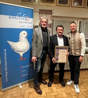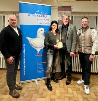 Eine besondere Premiere stellte die erstmalige Vergabe des Titels „Jungtauben-Meister“ dar. Dieser vom Ehrenvorsitzenden Andreas Gehrmann gestiftete Preis ging an die Zuchtgemeinschaft Esser/Saliter, die mit 1.147 Punkten auf 12 Jungtiere des aktuellen Jahrgangs eine herausragende Leistung erzielte. Weitere 20 Ehrenbänder wurden sodann am nächsten Tag in der Ausstellungshalle an die erfolgreichen Züchter überreicht.