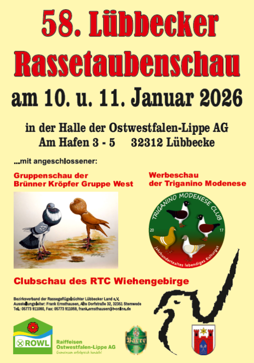 Weiterlesen...Einladung 58. Lübbecker Rassetaubenschau