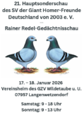 Herzliche Einladung zur 21. HSS des SV der Giant Homer-Freunde und Rainer Redel-Gedächtnisschau in Wildetaube