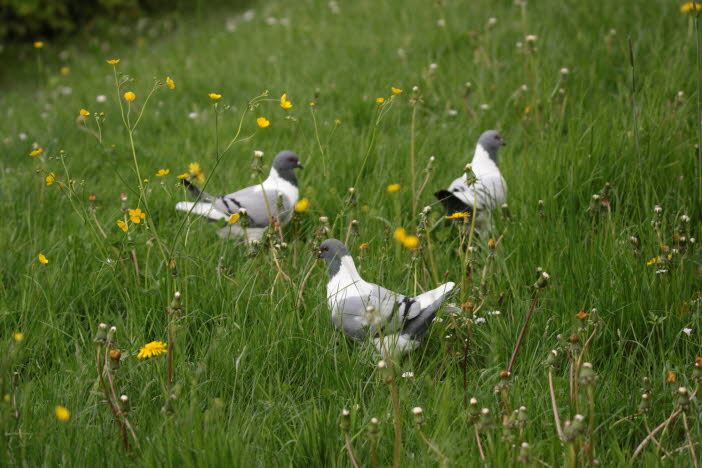 Kräftige Feldtaubengestalt, waagerechte Körperhaltung, mittelhohe Stellung, glattfüßig, glattköpfig; robust und flugfreudig.