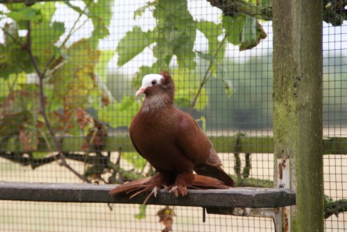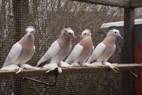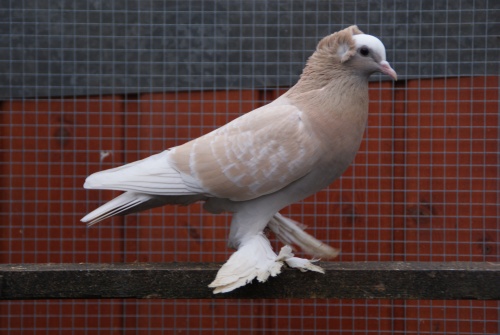 Kräftige, veredelte Feldtaubengestalt mit Rundhaube und fast waagerechter Haltung, glattfüßig oder mit dichter, mittellanger Fußbefiederung.