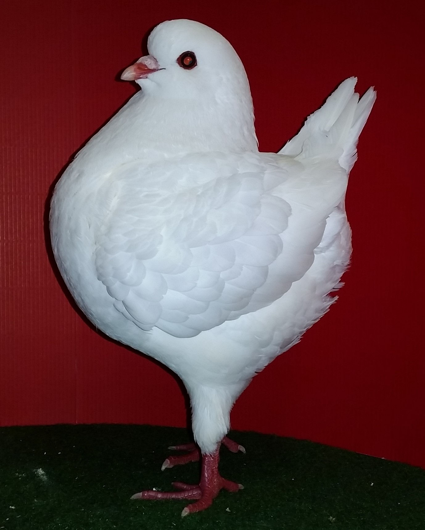 Körper breit, kurz, verhältnismäßig tief, rund und insgesamt muskulös anfühlend. Kräftiger Hals und dazu proportional passender Kopf. Täuber sollen maskulinen und Täubinnen femininen Eindruck vermitteln. In der Hand schwer, zu wenig Körpermasse ist unerwünscht.